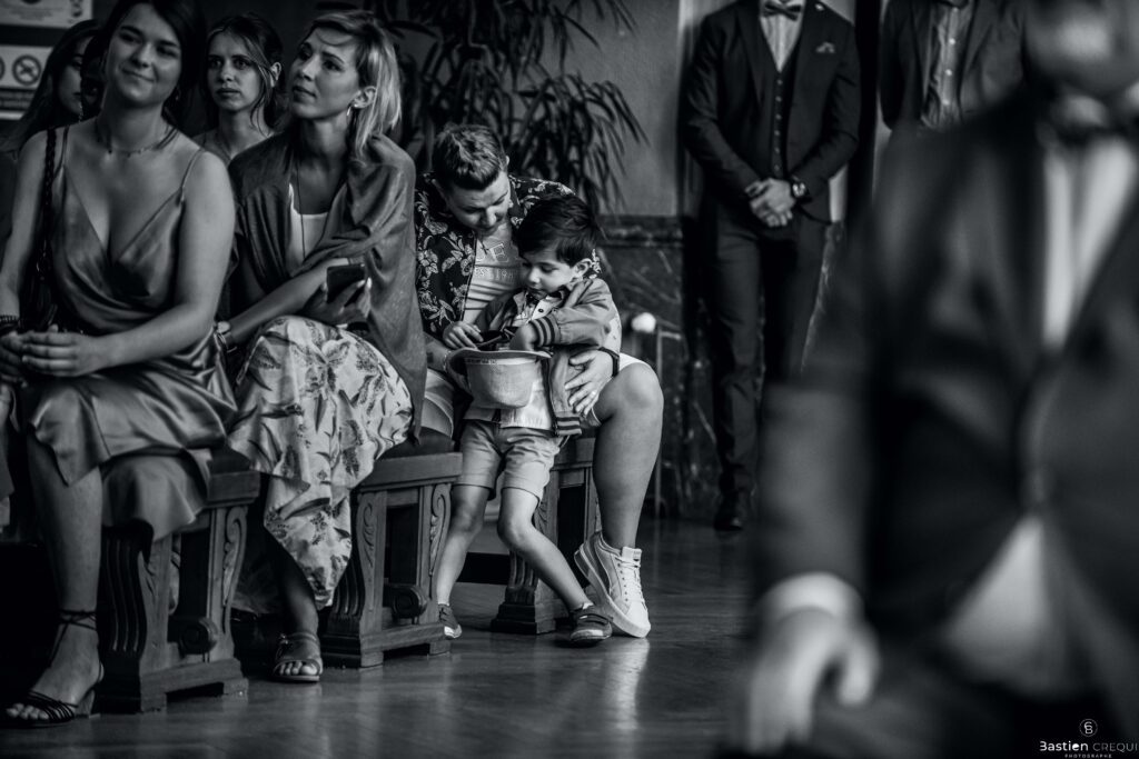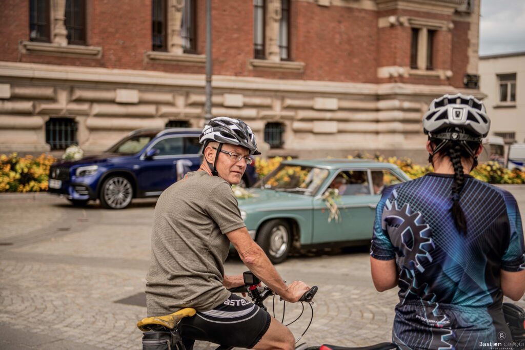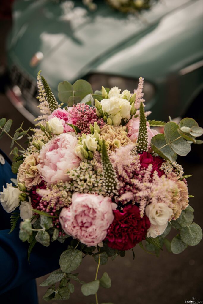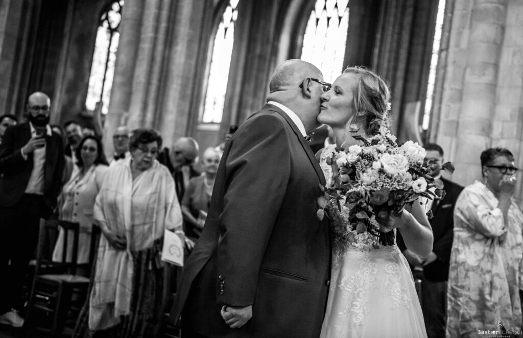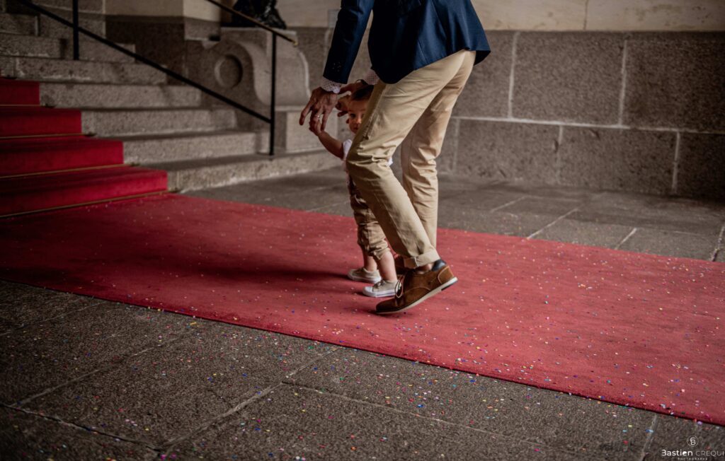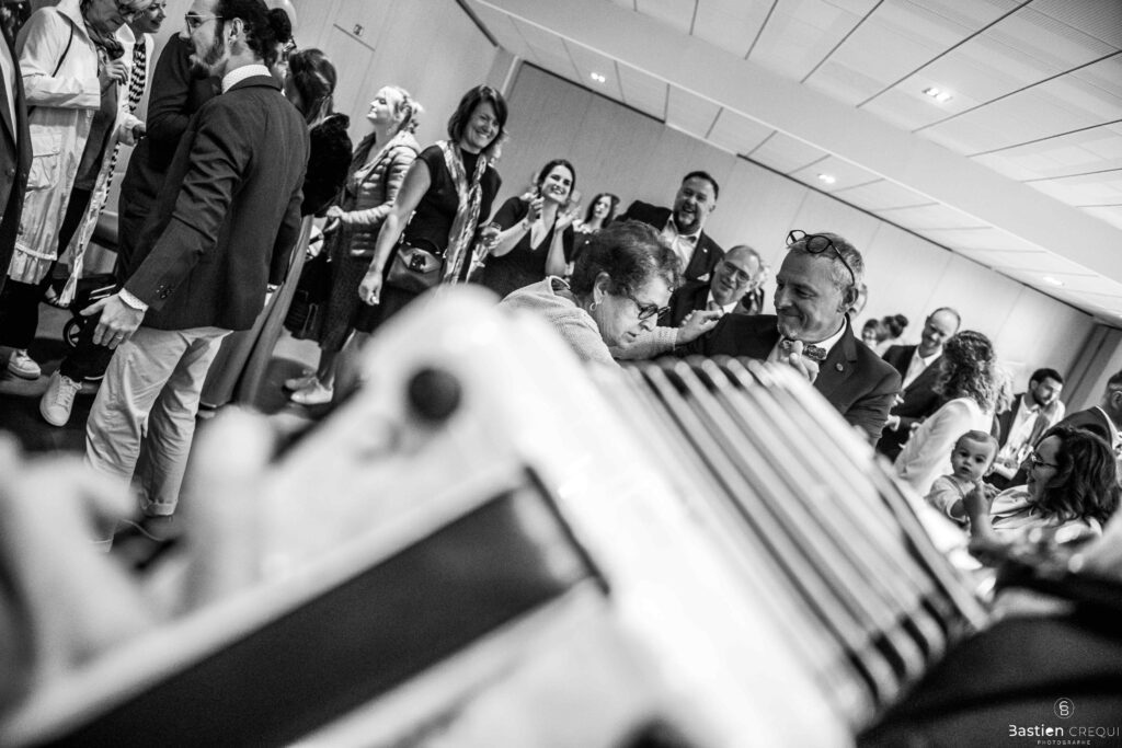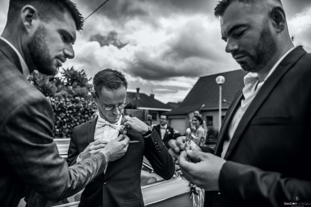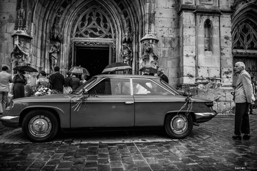Direction la cérémonie civile à la mairie de Dunkerque en véhicule de collection (Panhard). L’occasion pour moi de prendre quelques photos posées du couple avec la voiture avant de capturer les arrivées des proches sur le parvis de la mairie de Dunkerque. La cérémonie s’est déroulé dans la magnifique salle des mariages de Dunkerque.