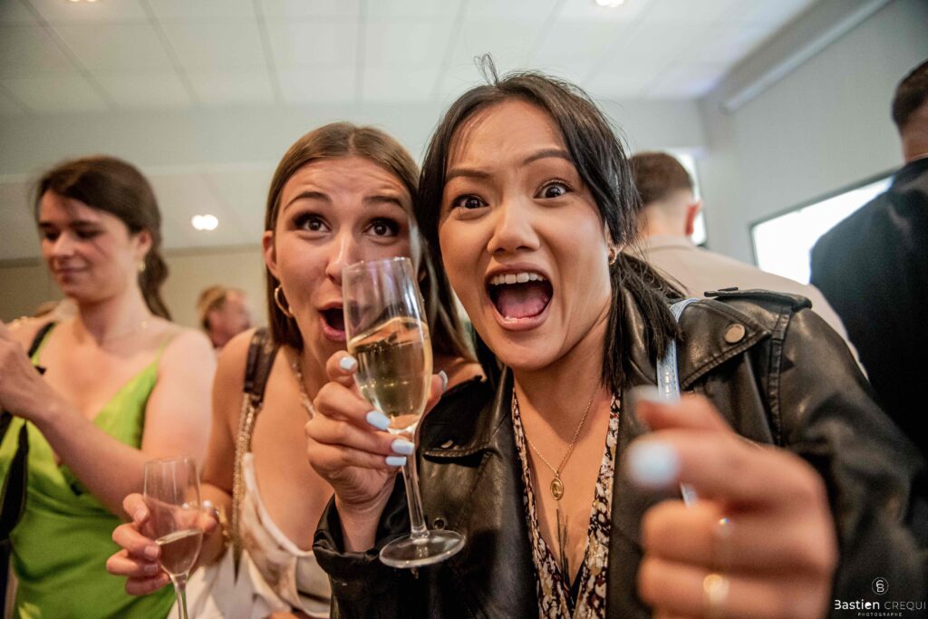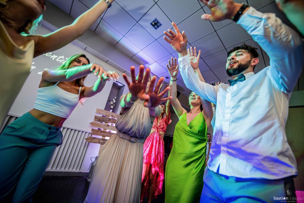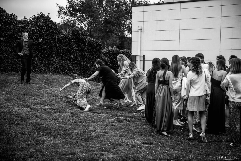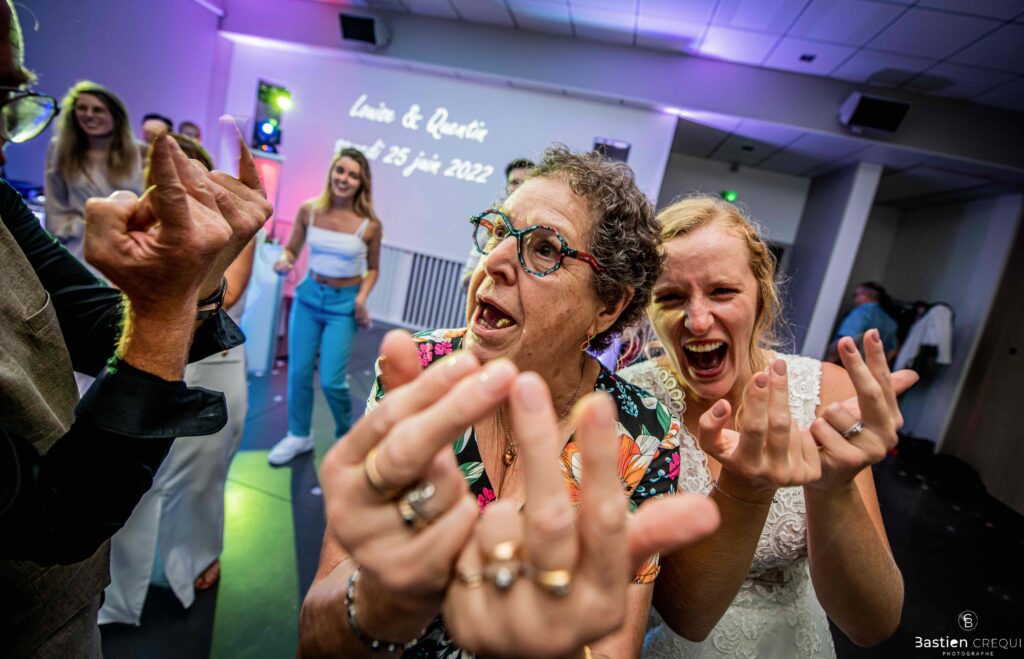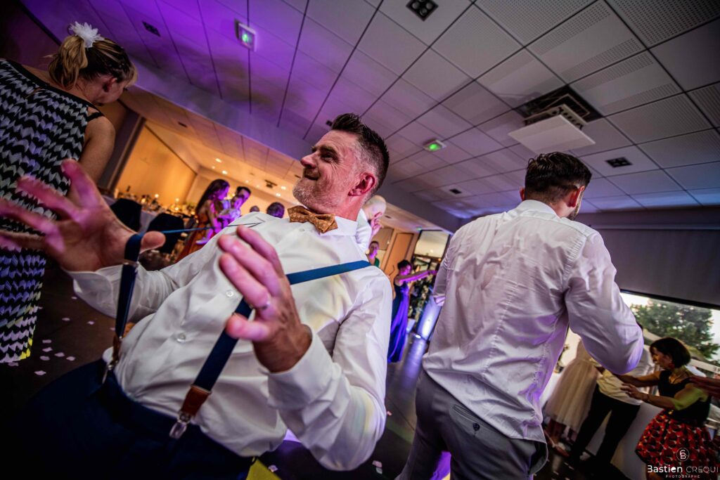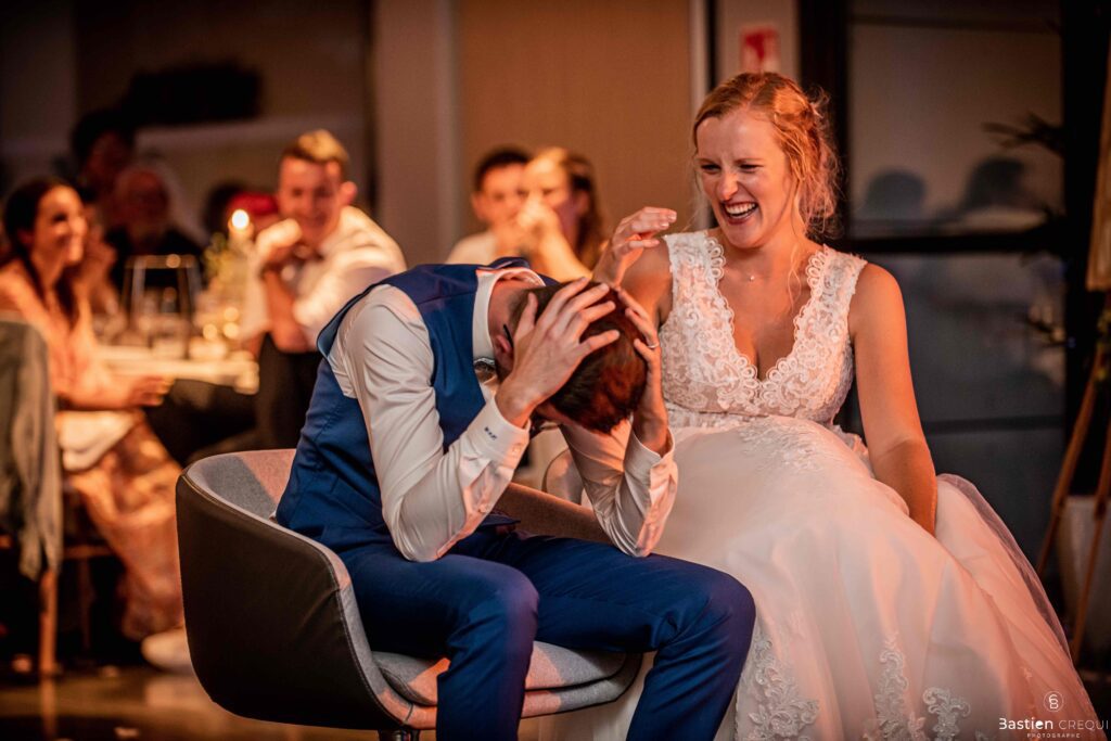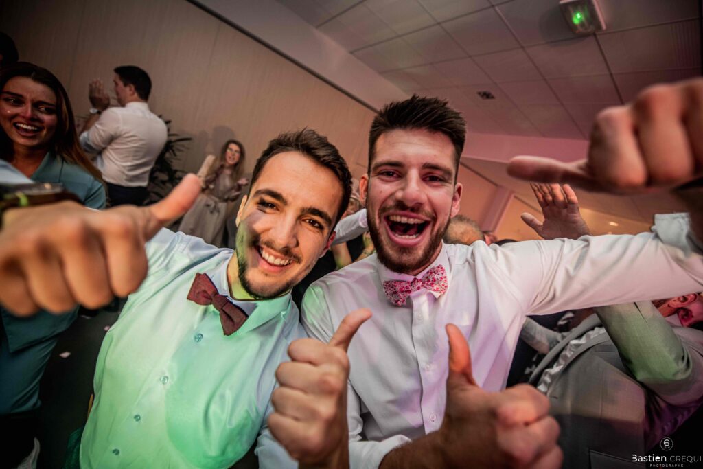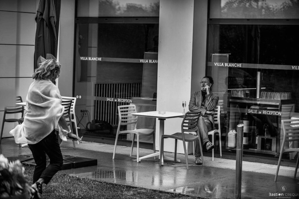 Après les cérémonies officielles, nous nous dirigeâmes vers La Villa blanche à Coudekerque-Branche. Le vin d’honneur s’est déroulé la plupart du temps à l’intérieur ça cause d’une pluie fine. La Villa Blanche est une salle de réception contemporaine situé à 5mn de Dunkerque et à 40mn de Lille. Elle est dotée d’une structure intérieure modulable, l’espace s’adapte selon la configuration de votre mariage. Une verrière existe pour célébrer une cérémonie laïque. La soirée a été folle ! Elle a débuté par l’entrée de deux flowers boy, savez-vous ce qu’est un flower boy ? C’est un ami des mariés qui est chargé de jeter des pétales de fleurs avant l’arrivée des mariés, souvent à partir d’une banane vintage attachée à sa taille. Les invités ont été surpris avec des animations à faire mourir de rire les jeunes mariés ! DB animation a ensuite déroulé sa playlist pour assurer l’ambiance de folie sur la piste de danse. C’était un plaisir de couvrir ce mariage dans cette ambiance survoltée.