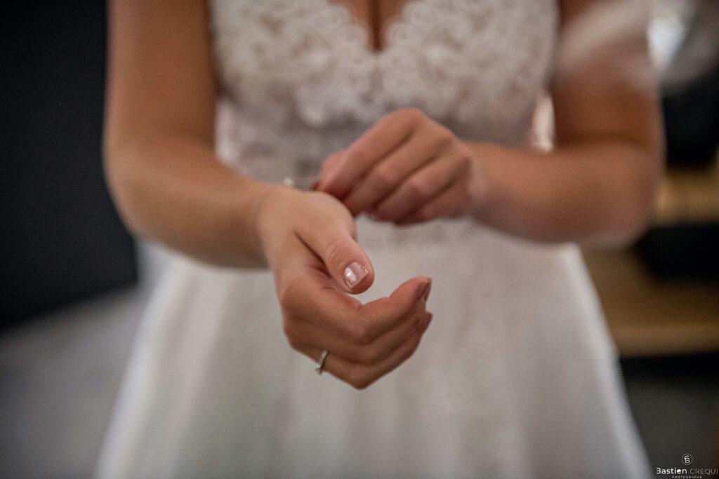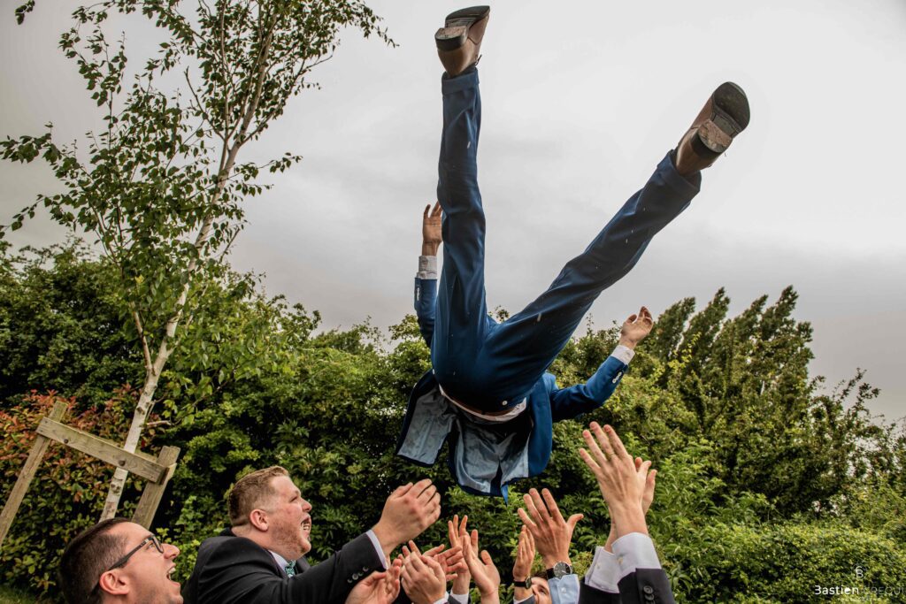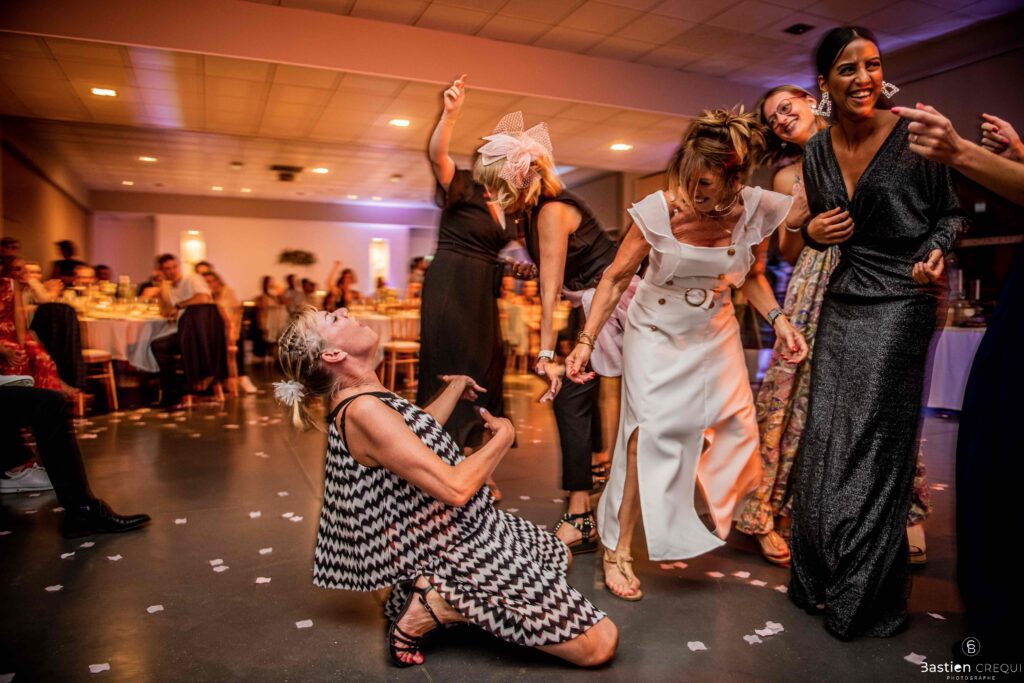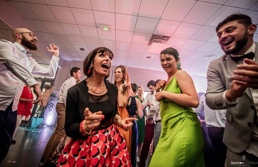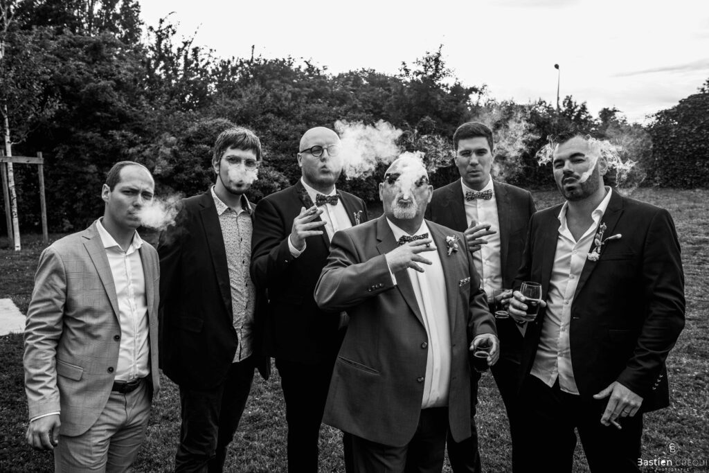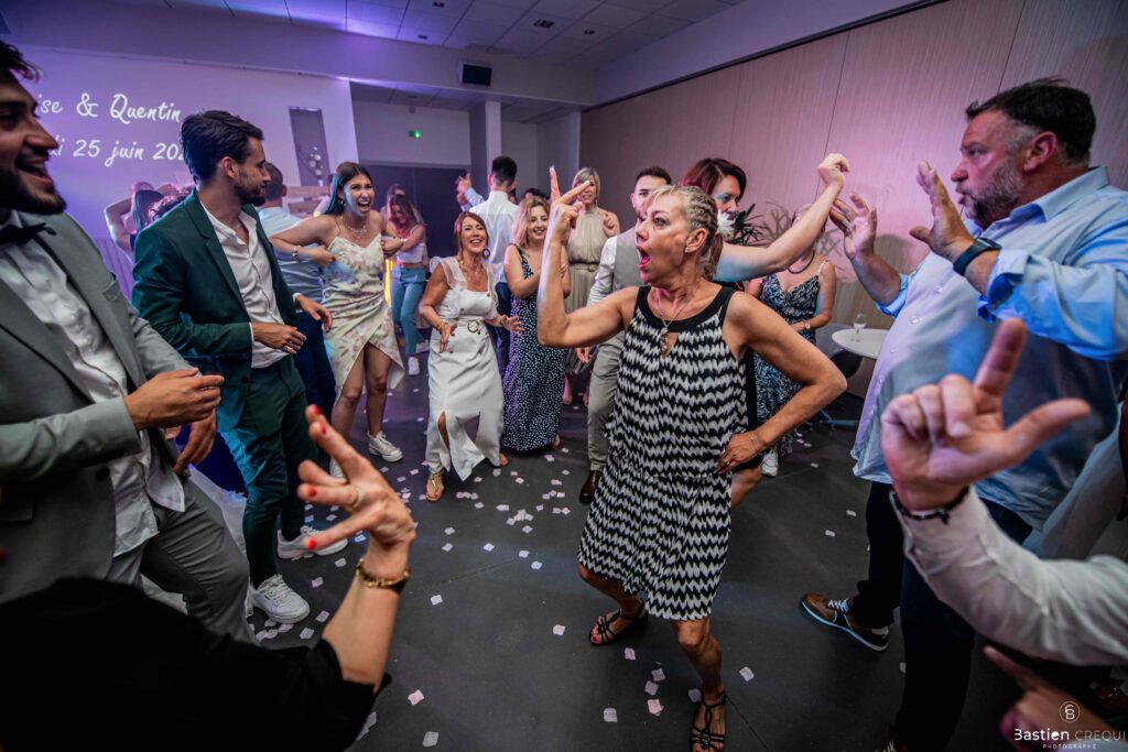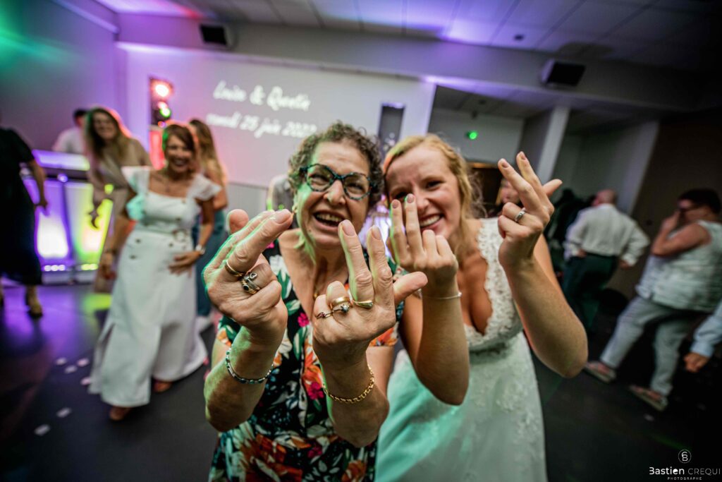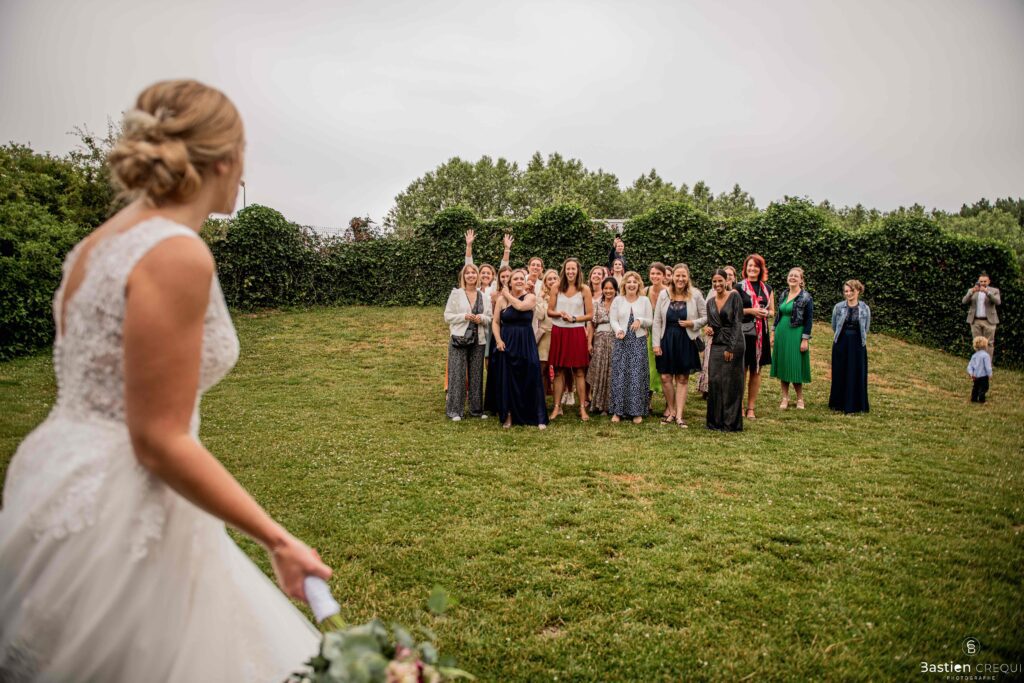 Après les cérémonies officielles, nous nous dirigeâmes vers La Villa blanche à Coudekerque-Branche. Le vin d’honneur s’est déroulé la plupart du temps à l’intérieur ça cause d’une pluie fine. La Villa Blanche est une salle de réception contemporaine situé à 5mn de Dunkerque et à 40mn de Lille. Elle est dotée d’une structure intérieure modulable, l’espace s’adapte selon la configuration de votre mariage. Une verrière existe pour célébrer une cérémonie laïque. La soirée a été folle ! Elle a débuté par l’entrée de deux flowers boy, savez-vous ce qu’est un flower boy ? C’est un ami des mariés qui est chargé de jeter des pétales de fleurs avant l’arrivée des mariés, souvent à partir d’une banane vintage attachée à sa taille. Les invités ont été surpris avec des animations à faire mourir de rire les jeunes mariés ! DB animation a ensuite déroulé sa playlist pour assurer l’ambiance de folie sur la piste de danse. C’était un plaisir de couvrir ce mariage dans cette ambiance survoltée.