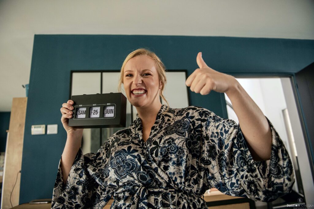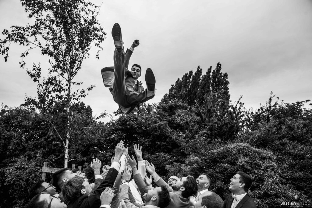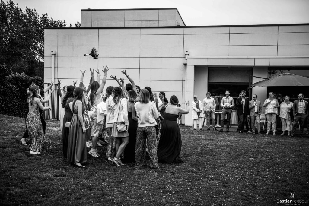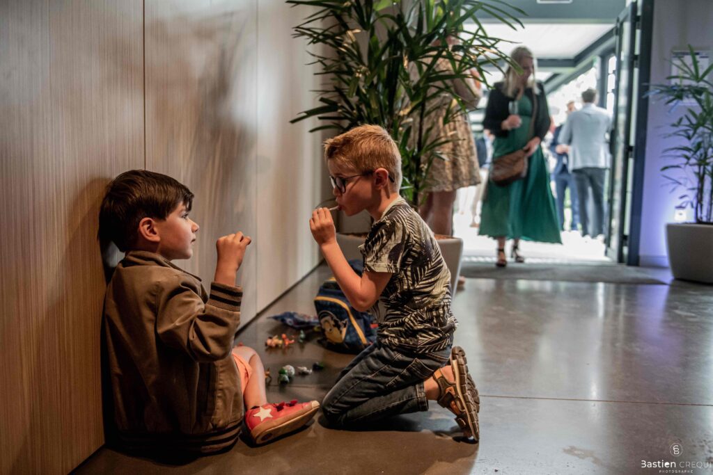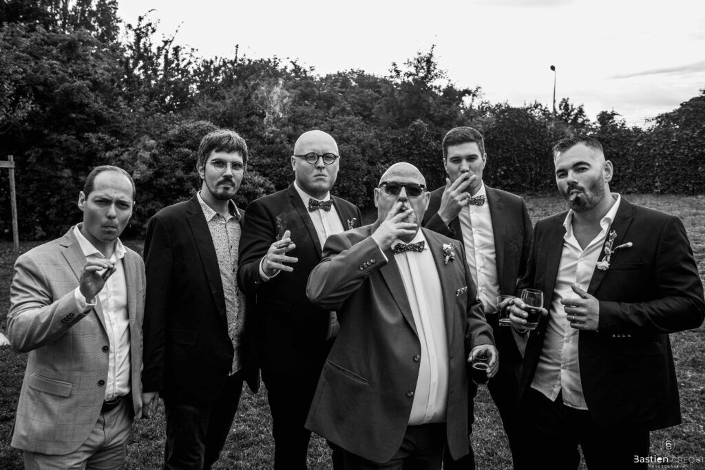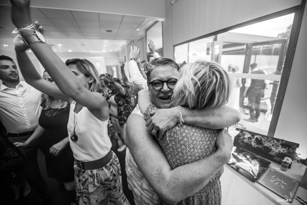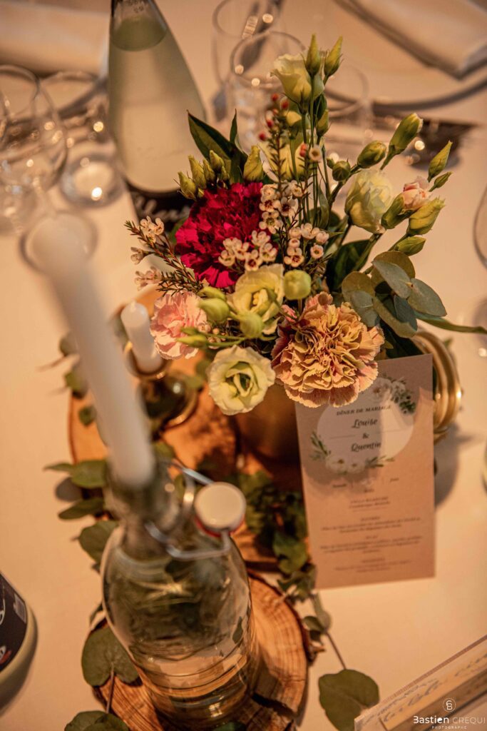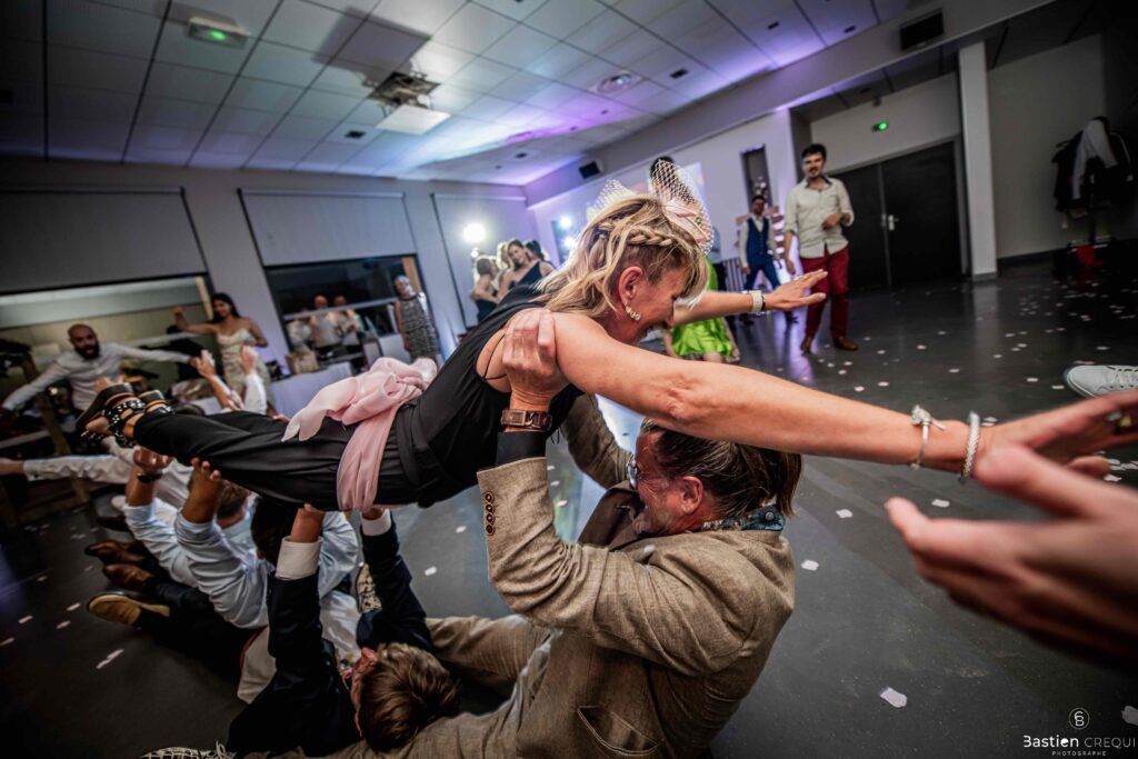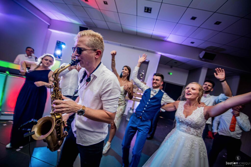 Après les cérémonies officielles, nous nous dirigeâmes vers La Villa blanche à Coudekerque-Branche. Le vin d’honneur s’est déroulé la plupart du temps à l’intérieur ça cause d’une pluie fine. La Villa Blanche est une salle de réception contemporaine situé à 5mn de Dunkerque et à 40mn de Lille. Elle est dotée d’une structure intérieure modulable, l’espace s’adapte selon la configuration de votre mariage. Une verrière existe pour célébrer une cérémonie laïque. La soirée a été folle ! Elle a débuté par l’entrée de deux flowers boy, savez-vous ce qu’est un flower boy ? C’est un ami des mariés qui est chargé de jeter des pétales de fleurs avant l’arrivée des mariés, souvent à partir d’une banane vintage attachée à sa taille. Les invités ont été surpris avec des animations à faire mourir de rire les jeunes mariés ! DB animation a ensuite déroulé sa playlist pour assurer l’ambiance de folie sur la piste de danse. C’était un plaisir de couvrir ce mariage dans cette ambiance survoltée.